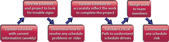 For most projects, the schedule will need to be reviewed on a weekly basis. During this review, the project manager updates the schedule with the current state of work that is completed and in-progress. The remaining work should be evaluated to see if the project will be completed within the original effort, cost, and duration estimates. If it can, you are in good shape. If it cannot, the project manager must implement corrective action.